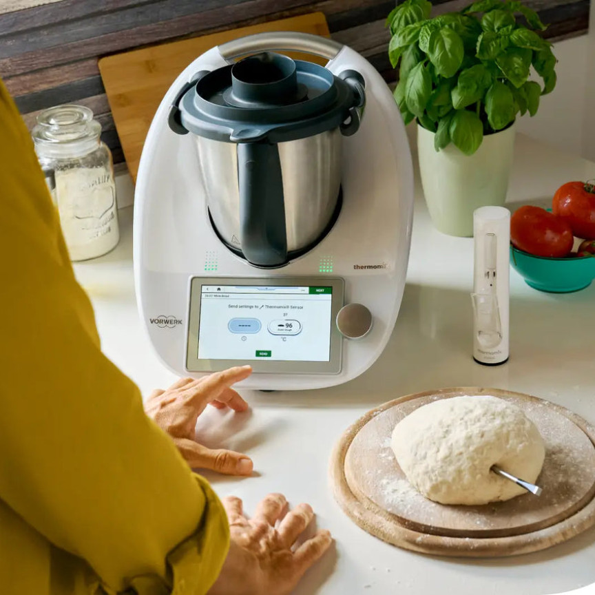 Είναι σημαντικό να γνωρίζουμε την ακριβή θερμοκρασία για την επίτευξη εγγυημένης επιτυχίας σε κάθε μία από τις συνταγές μας με το Thermomix® Sensor. Απλά συνδέστε το Thermomix® Sensor με το Thermomix® TM6 για να ελέγχετε πλήρως τη διαδικασία ψησίματος κέικ, ψωμιών, ψαριών και κρεάτων μέσω του Καθοδηγούμενου Μαγειρέματος. Εξοπλισμένο με δύο αισθητήρες, σας δίνει τον απόλυτο έλεγχο ψησίματος εκτός του κάδου, είτε πρόκειται για φούρνο, τηγάνι ή γκριλ. Παρακολουθείτε πάντα τον υπολειπόμενο χρόνο και τη θερμοκρασία που ανιχνεύεται από το Thermomix® Sensor.